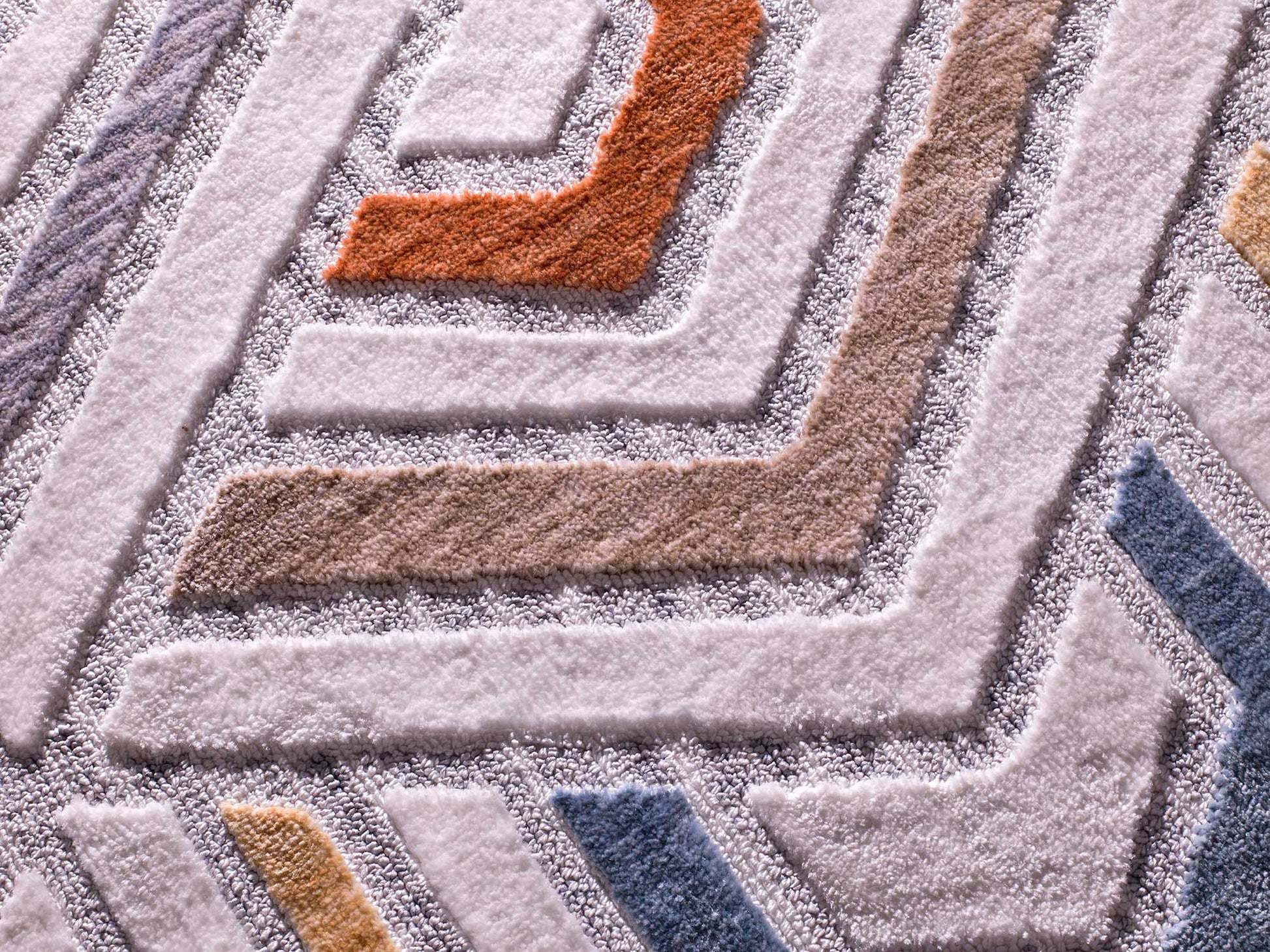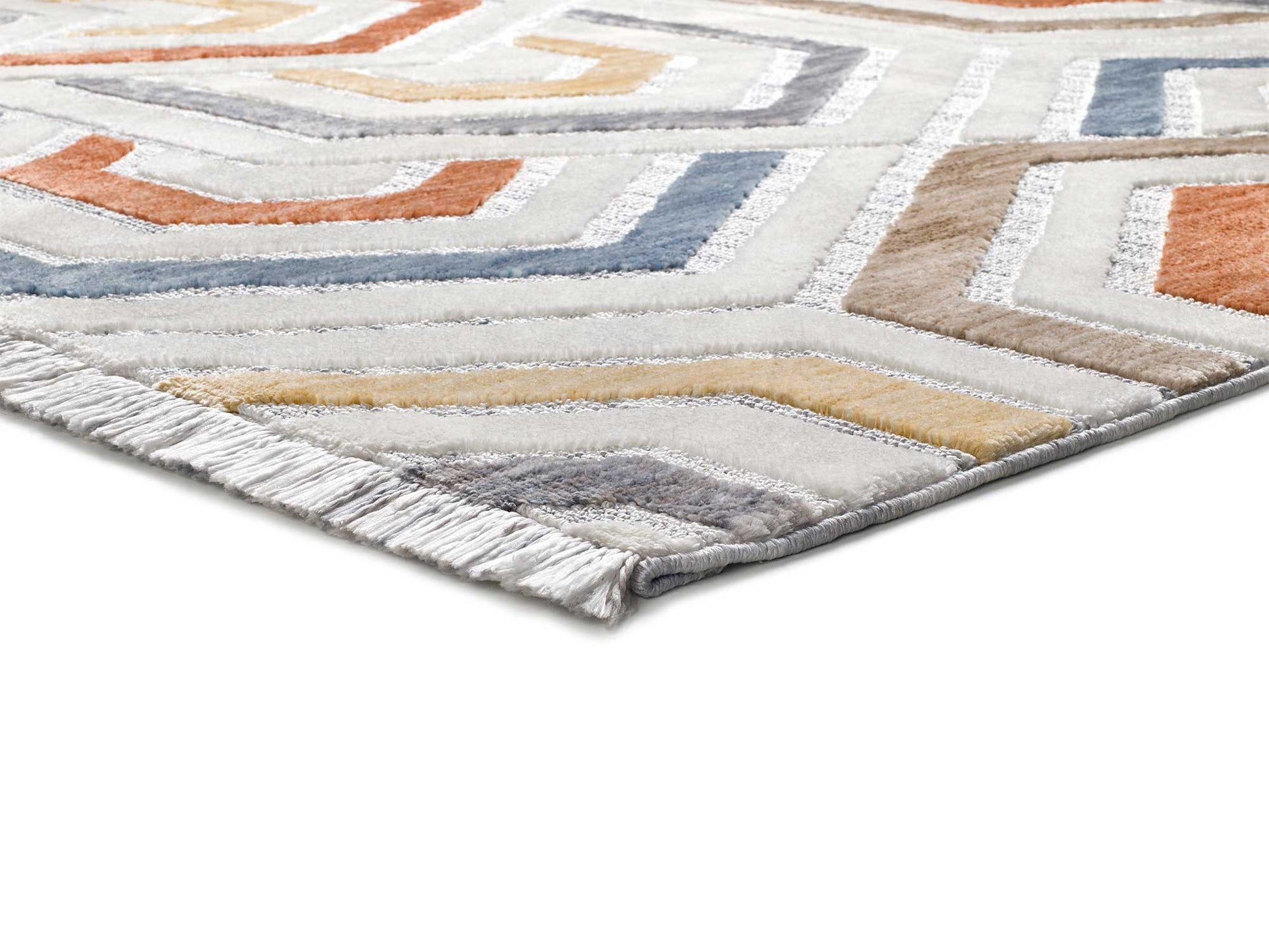 Nos encantan las formas geométricas de la alfombra BROADWAY. Una alfombra moderna con relieve, pelo a doble altura y un acabado en flecos. Diseñadas con una combinación de actuales colores empolvados.